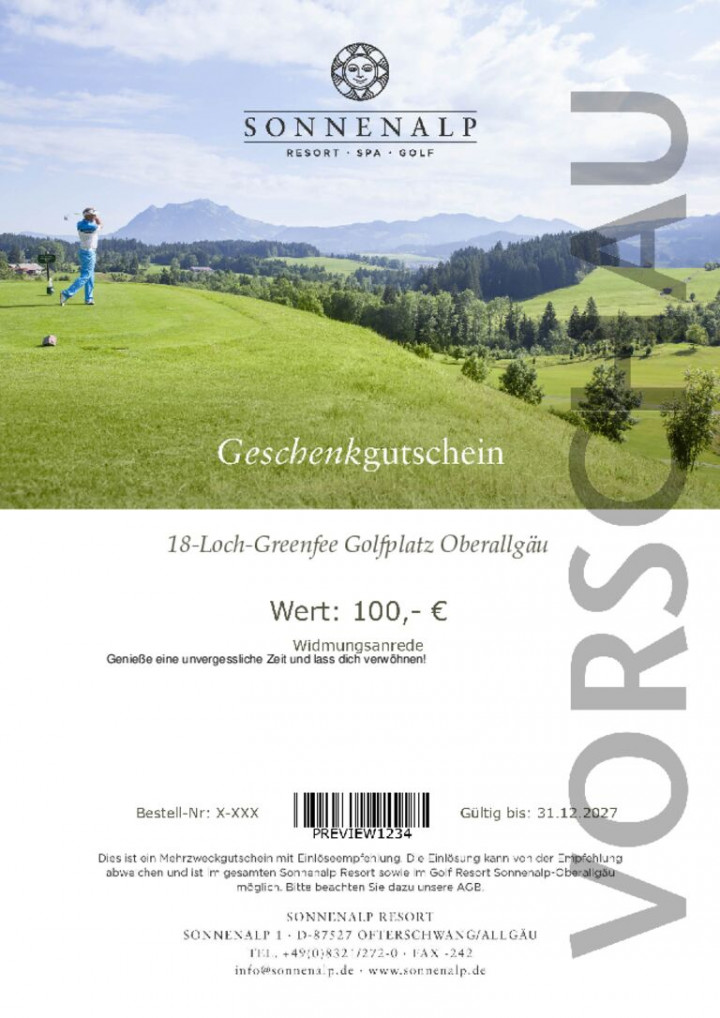 18 hole green fee voucher golf course Oberallgäu