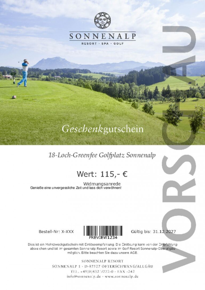 18 hole green fee voucher golf course Sonnenalp