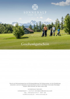Golfvergnügen verschenken mit einem Wertgutschein für das Golf Resort Sonnenalp-Oberallgäu. Drei traumhafte Golfplätze vor dem Traumpanorama der Allgäuer Alpen.